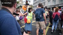 Giant Trump model seen towering over protesters in London