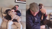 'French bulldogs shower returning grandad with endless love '