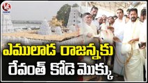 Revanth Reddy Offers Traditional Kode Mokku At Sri RajaRajeshwara Swamy Temple In Vemulawada | V6 News