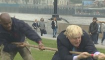 Plus que par ses paroles, c'est par ses bévues que Boris Johnson se fait remarquer outre-Manche. L'étonnant maire de Londres s'est essayé au tir à la corde devant le Tower Bridge mardi au Poppy Day, journée de commémoration pour les victimes de la Première guerre mondiale. Et comme à son habitude, c'est sur le derrière que l'édile britannique a terminé cet affrontement amical. Maladroit ou malchanceux, Boris Johnson accumule les gaffes. Florilège.