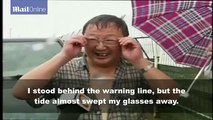 Footage Visitors washed away by strong Qiantang tidal bore