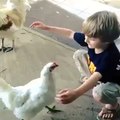 Animals Love kids Great Fun with Hen Wow