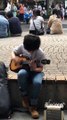 Un enfant joue Glassical Gas au ukulélé