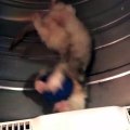 raccoon playing with ferret