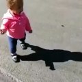 In this video A little girl scared of her shadow