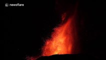 Stunning footage of Etna crater spewing lava