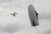 Cuando el joven ve venir la ola ya es demasiado tarde para esquivarla y termina dando vueltas junto con su moto de agua. Todo quedó en susto.
