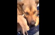 Dog cries real tears when puppies rescued