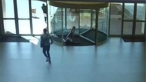 Female Shoplifter Slams into Glass Door Trying to Escape