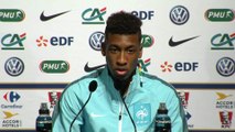Kingsley Coman est apparu décontracté pour sa première conférence de presse avec l'équipe de France A. "J'arrive avec l'intention de tout casser" a-t-il déclaré.