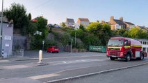 Fire engine rushing through Pembroke with lights and siren to attend an apartment fire in Monkton