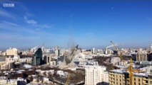Dramatic footage has emerged from China of the moment a 118-metre-tall building was demolished.<br /><br />The building had never been put into use for a day since it was completed in 1999.<br /><br />The video, captured in Xi'an, Shaanxi Province on Sunday morning, shows the building disappearing into ash and rubble within 15 seconds following the explosions.<br /><br />According to news reports, the 27-storey building is so far the highest that has been demolished in mainland China ever and it had never been used during its whole life.