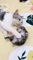 Mom cat hugs kitten having a bad dream - too cute -