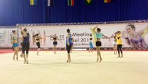 Ginasta capixaba Natália Gaudio ensina as atletas ucranianas Viktoria Mazur , Ganna Rizatdnova e o conjunto do país a sambar no ginásio do Tancredão