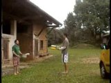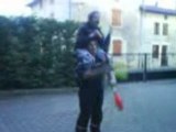 Jonglage massues fabien avec Nico sur épaules