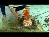 Hindu ladies make a traditional cow dung hillock to symbolize Mount Govardhan, the mountain which was once lifted by Lord Krishna during Govardhan puja at a temple complex in Agra.<br /><br />Govardhan Puja, also called Annakut (meaning a heap of grain), is celebrated as the day Krishna defeated Indra by lifting the Govardhan hill. It is the fourth day of Deepawali (Diwali), the Hindu festival of lights.<br /><br />The day is celebrated on the first lunar day of Shukla Paksha (bright fortnight) in the Hindu calendar month of Kartik.<br /><br />Govardhan pooja is performed with great zeal and enthusiasm in the states of Punjab, Haryana, Uttar Pradesh and Bihar. In this pooja, there is a tradition of building cow dung hillocks, which symbolize the Mount Govardhan, the mountain which was once lifted by Lord Krishna. After making such hillocks people decorate them with flowers and then worship them. They move in a circle all round the cow dung hillocks and offer prayers to Lord Govardhan.<br /><br />Govardhan Puja forms an important part of the celebrations of Diwali.<br /><br />Source: http://festivals.iloveindia.com/diwali/govardhan-puja.html#E5PLWTgDGLVRwXAg.99<br /><br />This footage is part of the professionally-shot broadcast stock footage archive of Wilderness Films India Ltd., the largest collection of HD imagery from South Asia. The collection comprises of 100, 000+ hours of high quality broadcast imagery, mostly shot on HDCAM / SR 1080i High Definition, Alexa, SR, XDCAM and 4K. Write to us for licensing this footage on a broadcast format, for use in your production! We are happy to be commissioned to film for you or else provide you with broadcast crewing and production solutions across South Asia. We pride ourselves in bringing the best of India and South Asia to the world... <br /><br />Please subscribe to our channel wildfilmsindia on Youtube for a steady stream of videos from across India. Also, visit and enjoy your journey across India at www.clipahoy.com , India's first video-based social networking experience!<br /><br />Reach us at rupindang [at] gmail [dot] com and admin@wildfilmsindia.com<br /><br />To SUBSCRIBE click the below link:<br />www.youtube.com/subscription_center?add_user=WildFilmsIndia<br /><br />Like & Follow Us on:<br />Facebook: www.facebook.com/WildernessFilmsIndiaLimited<br />Website: www.wildfilmsindia.com