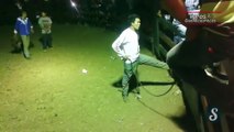 Un homme retient la porte d'un chiquero avec le pied dans une arène (fail)