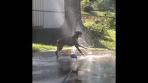 Boxer Plays with Sprinkler