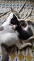 Baby&Kitten Together Sleeping Cute Cat Like A Belly Phone Cat Eating Together Cat Doing Funny Things