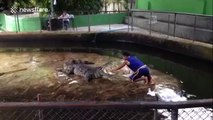Man grabs crocodile's tongue in Thailand