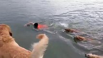 Funny Animal: Swimming With Golden Retrievers