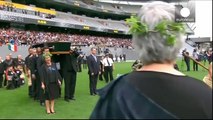 One final haka as New Zealand bids emotional farewell to Jonah Lomu.The winger’s number 11 was the theme of a moving tribute to the All Black star. Report by Wakefieldj. Like us on Facebook at http://www.facebook.com/itn and follow us on Twitter at http://twitter.com/itn
