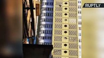 A bizarre video has emerged from China of a macaque monkey staging a great esc-ape and scaling a residential building.<br /><br />In the footage, captured in Hunan Province on Monday, the creature can be seen clambering around the side of the building before making itself comfortable on a balcony.<br /><br />Local animal control authorities are reportedly still trying to catch the cheeky monkey and where it escaped from remains unknown.