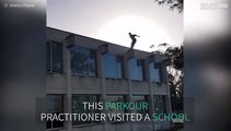 Death-defying parkour feat in school
