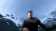 Dangerously tight squeeze diving underneath caves