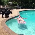 Un Labrador avec un aileron de requin passe à l'attaque dans la piscine !