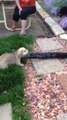 Oliver wrestling the sump pump hose.