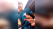 Des girages mangent dans une voiture... amusant !