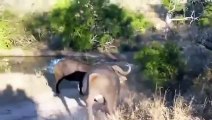 Amazing...Lion vs Buffalo Headbutts Into the Air!