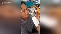 Massive leach writhes after being removed from woman's nose