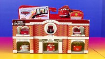 Just4fun290 presents Disney Pixar Cars Mini Adventures Race N Rescue Station With Mater Doc Hudson Flo Red Fire Truck!