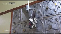 Extrait de Patron Incognito dans lequel Océane enfonce des colis dans la boite aux lettres.