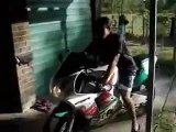 Idiot riding and crashing his first motorcycle