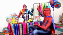 Spiderman SHOP is SUPERMAN Flying! Toys Pink Spidergirl Joker FUN Amazing Superheroes in Real Life