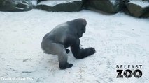 Gorilla makes snowballs at Belfast Zoo