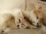 Un chat fait plein de câlins à son copain le chien qu'il n'a pas vu depuis 10 jours