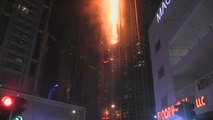 A huge fire has engulfed a 63-storey hotel in central Dubai ahead of a New Year's Eve firework display. <br /> <br />Despite the blaze at the Address hotel, the display at the nearby Burj Khalifa, the tallest building in the world, started as planned at midnight. <br /> <br />Officials say the fire has been brought largely under control and 16 people suffered mostly minor injuries. <br /> <br />It is unclear what caused the blaze, which broke out as large crowds had gathered to ring in the New Year. <br /> <br />People were asked to leave the area around the Address Downtown Hotel, which was evacuated.