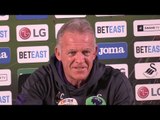 Swansea City caretaker manager Alan Curtis says his side were "unlucky not to get something" after Swansea City lost 2-1 to Manchester United at Old Trafford.