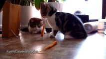 Cute Kitten Wants To Meet The Puppy. Struggle Is On!
