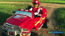 FIRE TRUCK FOR KIDS POWER WHEELS RIDE ON Paw Patrol Video Marshall Put out Fire Egg Surpri