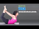 Dhanurasana<br />or bow pose, actually looks a lot like an archer bow when your are in full pose. We are not quite certain where the arrow would go, but we can use our imagination. This is a pose best done after a little warm-up with other poses, and it may be difficult for beginners. Bhujangasana, or cobra pose, is a nice pose to start building up the strength required in bow.<br /><br />Preparation and Pose Tips :<br /><br />1. Lie on your stomach. Bring the tops of your feet to the mat, drawing your feet together and keep them extended throughout the pose. <br />2. Extend your arms along the side of your body with your palms facing upward. On an inhale stretch your arms back and up. <br />3. Lift your chest, shoulders and chin, bend your knees, and reach back and take hold of your ankles, or the tops of your feet. <br />4. Draw your tailbone down to protect the lower back. The weight of your body is resting on your abdomen and hips. Don?t strain or tighten your buttocks and keep your heels as far away from your buttocks as you can. Allow your body to rise with it?s own natural strength. <br />5. Focus on stretching out and up through the front of your body. <br />6. Try to keep your knees in line with your hips and look forward. <br />7. If you are a beginner you can grab your pants or wrap a strap around the front of your ankles to practice getting into the position. <br /><br />Now, Download Yog Sadhana App on your Android Smartphone :- http://bit.ly/Yog-Sadhana-App