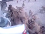 Ces singes se jettent sur le coffre d'une voiture et le dévalise...