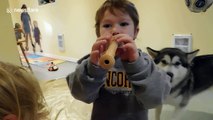 Singing dog loves joining in on kids' music class