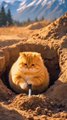 cat hunting wild boar by digging hole