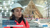 Sa toiture avait disparu dans les flammes le 15 juin 2015... La basilique Saint-Donatien, à Nantes, vient d'être recouverte d'une "sur-toiture", une "parapluie" qui permettra d'abriter la voute de l'édifice et les artisans qui recréeront à l'identique la toiture incendiée.