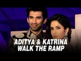 Aditya Roy Kapur and Katrina Kaif walked the ramp for Manish Malhotra's new collection in Mumbai. The duo talked about Manish's new collection and also talked about their film Fitoor. Take a look!